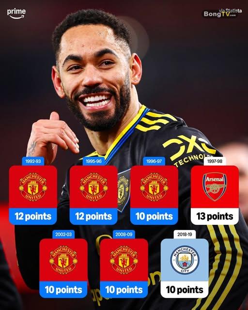 🔙 Trong quá khứ, Man Utd từng có 5 lần lội ngược dòng trong cuộc đua vô địch Premier League với 10+ điểm ít hơn đối thủ.