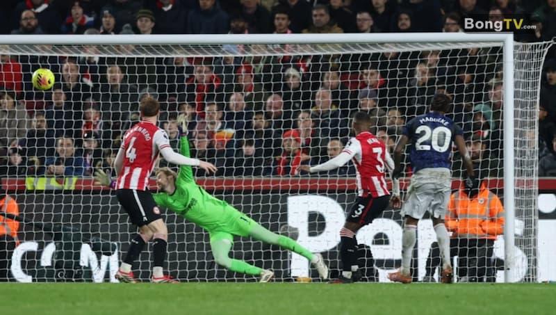 Cơ hội nguy hiểm nhất hiệp một thuộc về Brentford khi Igor Thiago đánh đầu uy lực sau pha chuyển trạng thái nhanh. Thủ thành David Raya kịp chuộc lỗi bằng pha cứu thua xuất sắc.