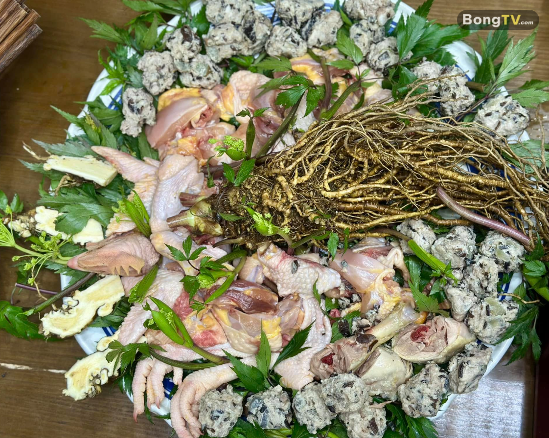 Thịt gà hầm sâm?!